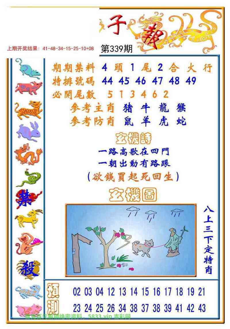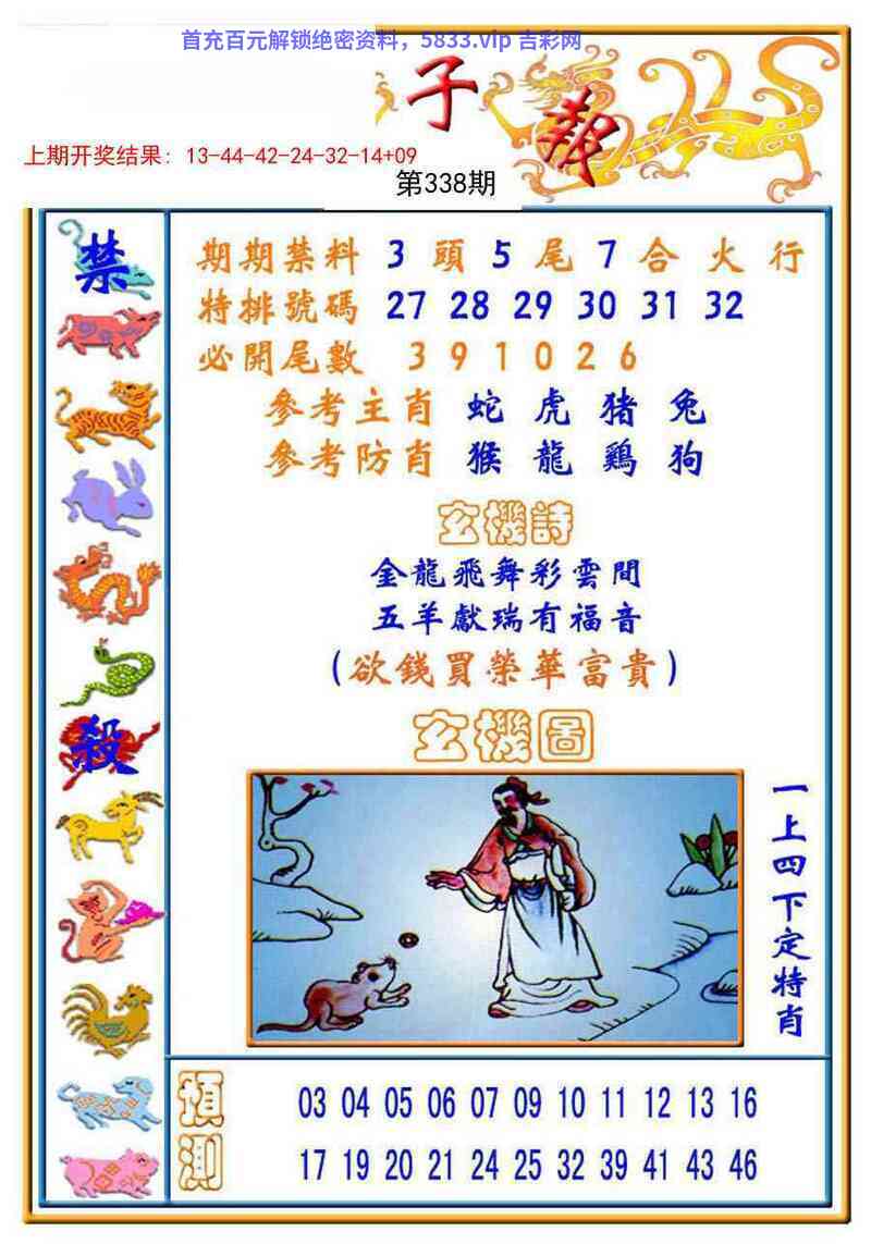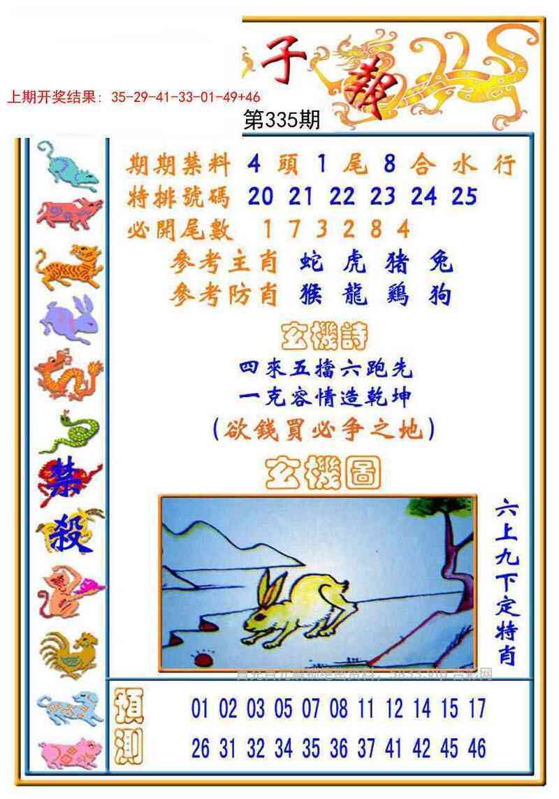 | 335期三行【金火水】开:狗44准 |