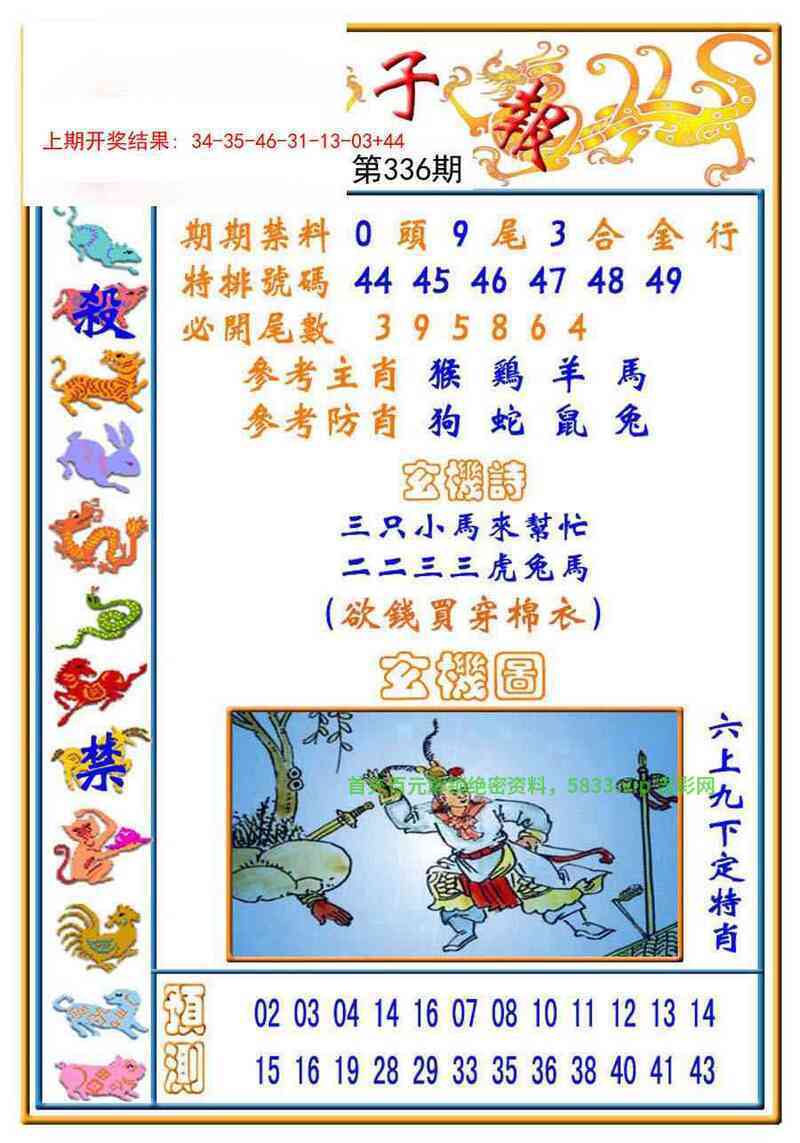 | 334期三行【火木金】开:猴46准 |